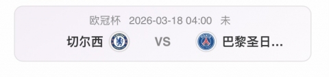 欧冠杯 04:00 切尔西 VS 巴黎圣日耳曼
